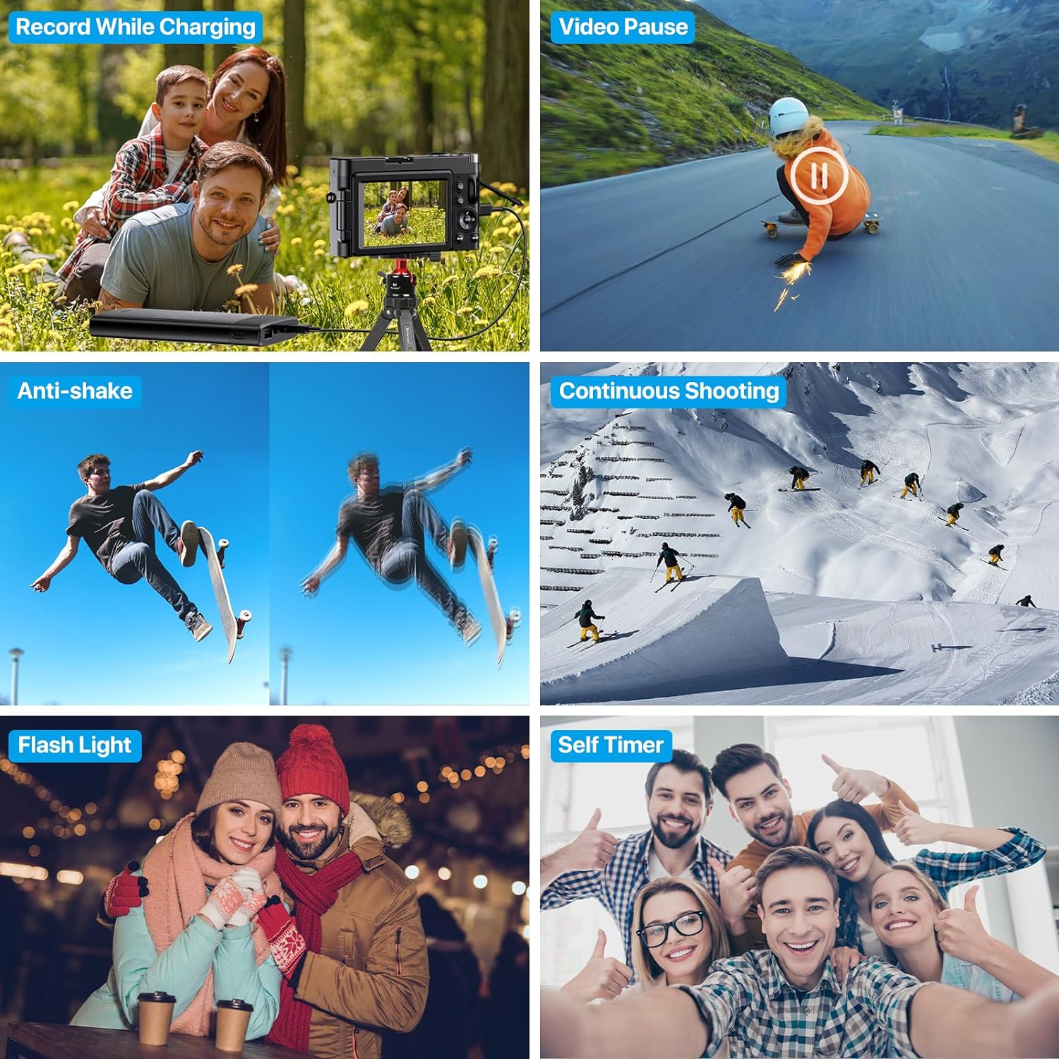 【4K Point and Shoot Camera】: With this 4K point and shoot camera, you can take pictures or videos very quickly after switching it on. Even beginners and amateurs can take stunning photos of people, landscapes, selfies, and more! Compact but powerful, this small digital camera is perfect for pocketing when you want to travel light without carrying a ton of lenses.