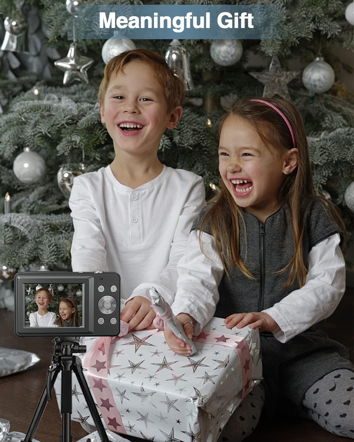đăMeaningful GiftăThis black digital camera for kids is equipped with a high-level CMOS Sensor and anti-shake function, which helps to capture vivid clear 44MP Images and record stable smooth FHD 1080P resolution videos. It’s a meaningful Christmas or birthday gift camera for kids to cultivate their interest in photography, experience the lovely life, and leave funny memorable moments with family or friends.