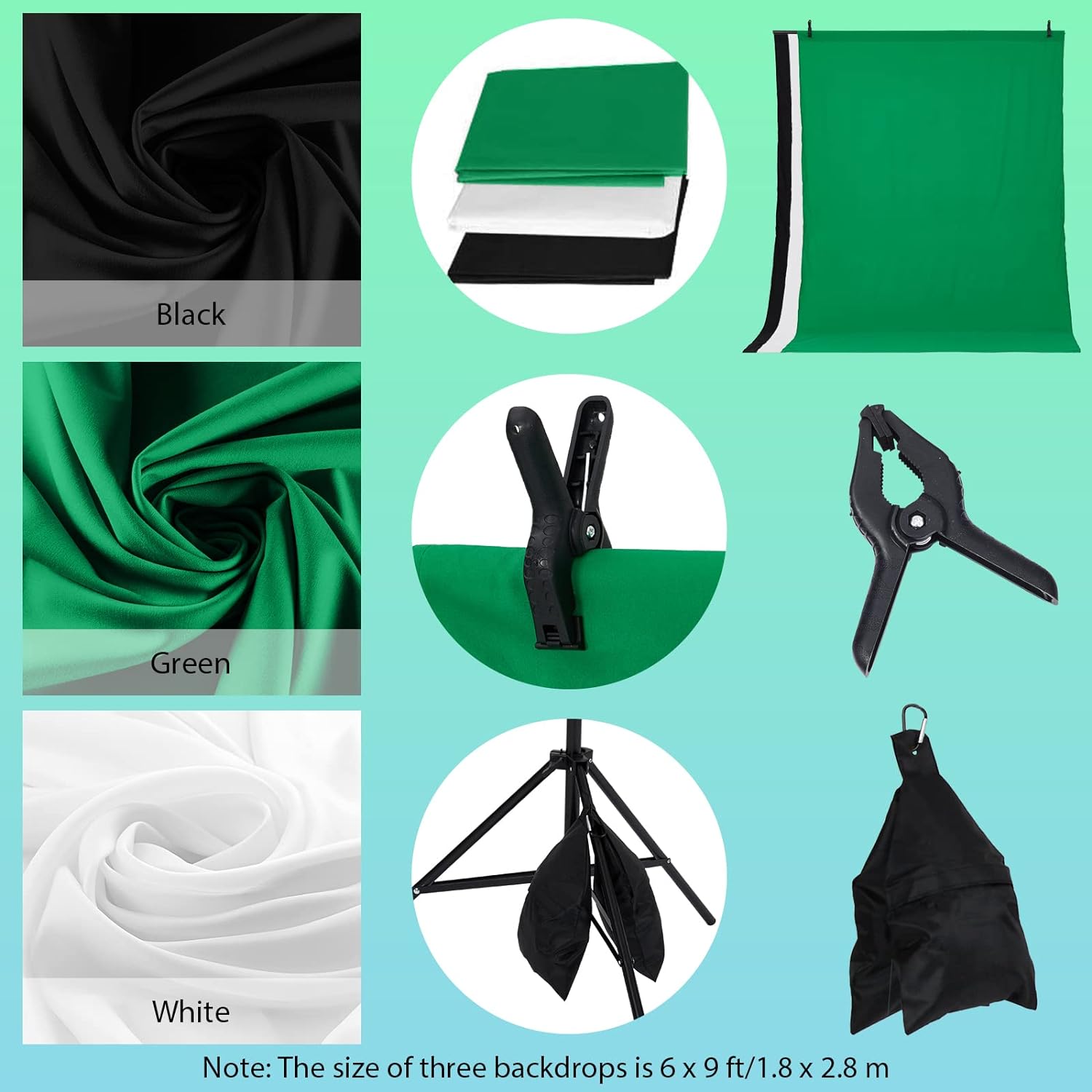 【Sturdy & Versatile Backdrop Stand】The 8.5 x 10ft backdrop stand is made of high-quality aluminum alloy and has an adjustable height range of 4.3 ft to 8.5 ft and a width range of 5 ft to 10 ft, making it highly versatile for indoor and outdoor scenes.Backdrop white black green screen backdrop are made of 100% polyester material. Good elasticity, soft skin, good drape, durable, anti-wrinkle, no fading, machine washable, can be ironed or steamed in low temperature.