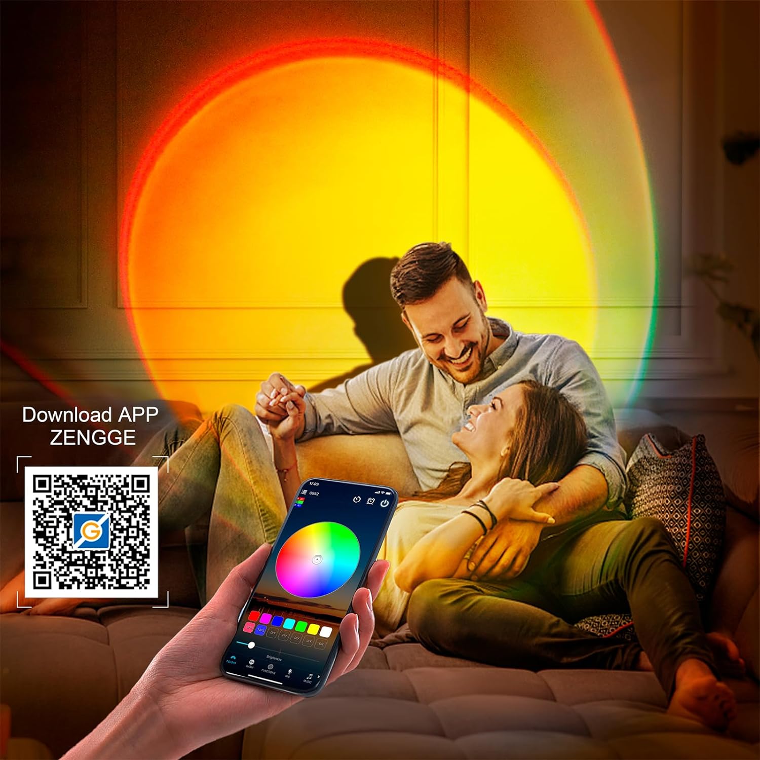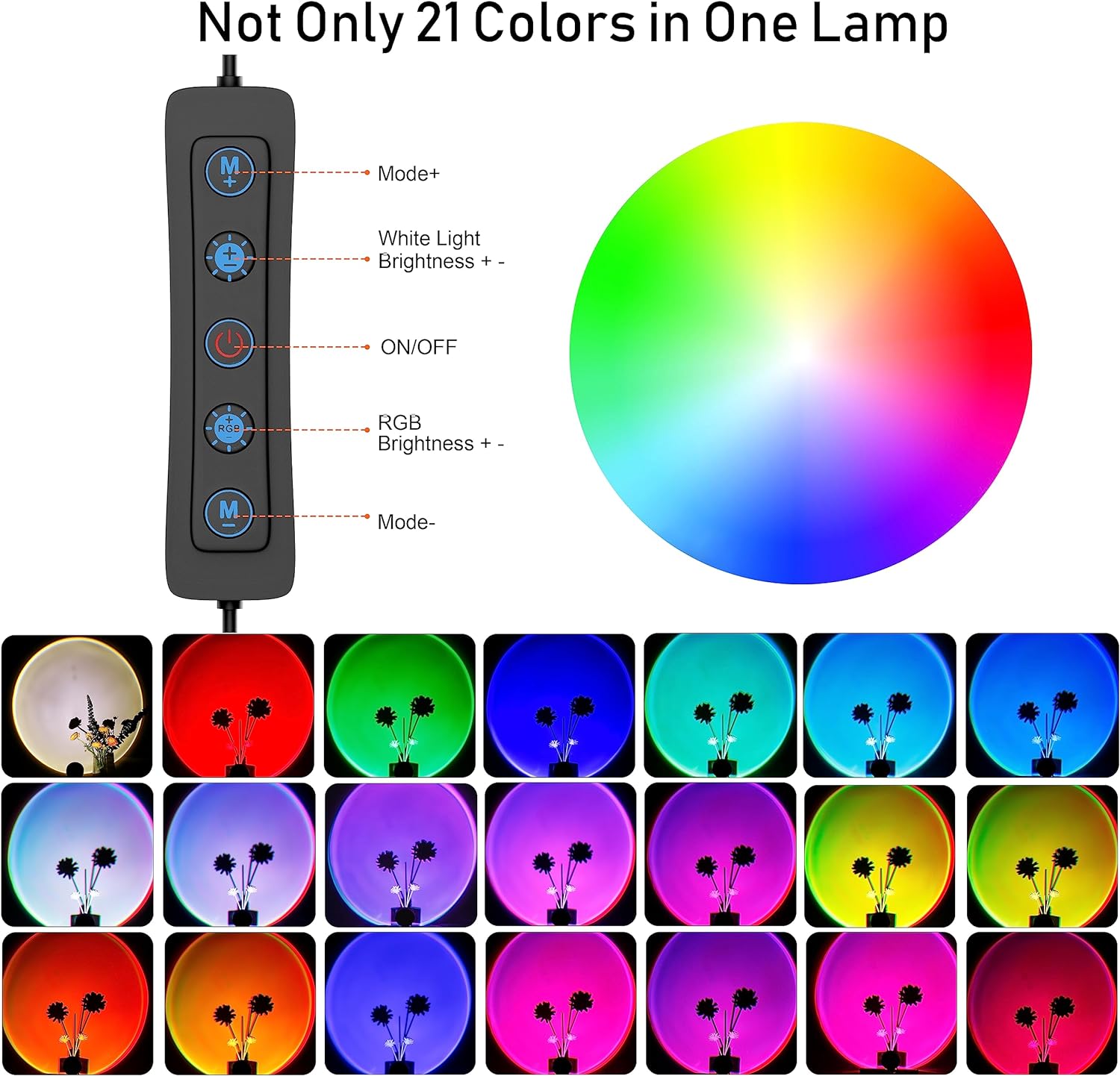 【Endless Color RGB Sunset Lamps】 – This upgraded sunset projection lamp features high-refraction lenses,farther distance ,wider light-emitting surface,and a larger projection range. Choose from over 21 colors and 4 dynamic modes via a switch button or the app, meeting the different lighting needs of users in various scenes.
