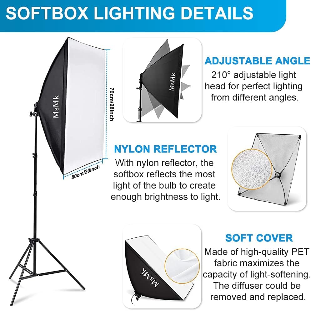 MsMk studio photography equipment consists of a backdrop stand kit and softbox lighting kits that contain everything you need to in your photography. It’s easy to install and use, flexible size to fit your space.
